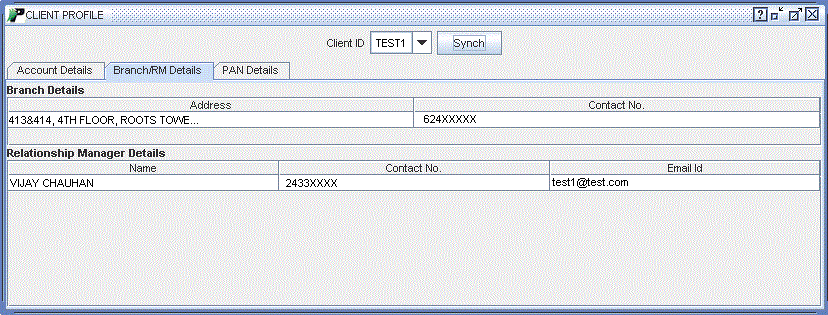 Branch/RM Details (Customer Profile) |