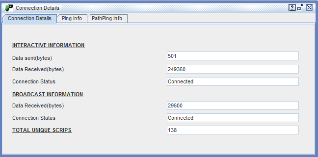 Broadcast Information - Connection Status - It displays whether the broadcast is connected or not. In other words, it indicates whether you are getting current market rates of your stocks in market watch or not.