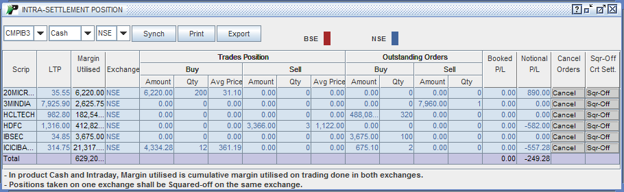 Intra-Settlement Report displays a scrip-wise summary of your trading activities for the current settlement. It includes all the trades and outstanding orders placed by you in Capital Market during the current settlement.