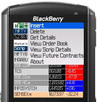 Market Watch screen provides you various options. These options can be accessed by pressing the right key (or the Options Key) on your mobile device.
