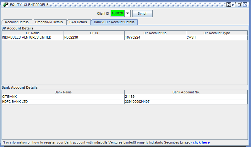 Here, you will view two separate tables - one indicating DP accounts that are linked with your Indiabulls account and other indicating Bank Accounts that are currently linked with your Indiabulls Account. Also Read: |