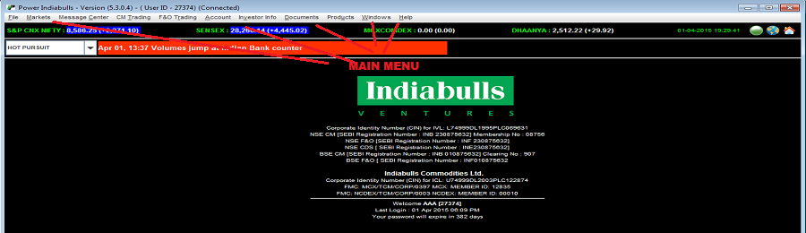 Products menu provides you access to various value-add products like Online IPO, News Room, Market Statistics, etc that are offered by Indiabulls to its clients. To know more these products, click here...