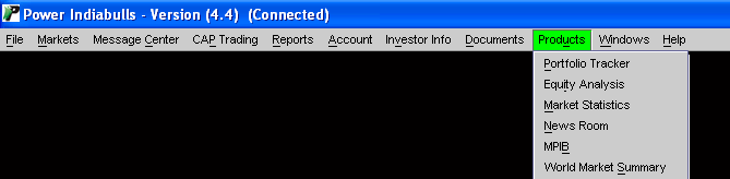 Products Menu gives you access to various useful products and services offered by Indiabulls. For ex., you can click on F&O Terminal option to trade in F&O segment. Or, you can create your portfolio of stocks using Portfolio Tracker feature to track their performance.
