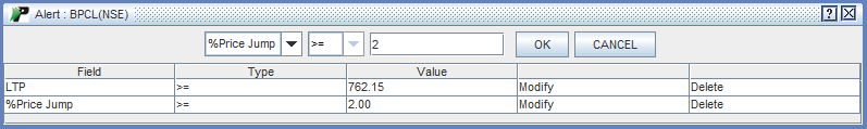 Note! You can create multiple alerts on the single scrip. In such scenario, multiple alerts set on the particular scrip are cumulated under its name. You can view them distinctively by selecting the scrip and clicking on 'Open' button. How to modify an alert ? To modify an alert, follow the steps given below: