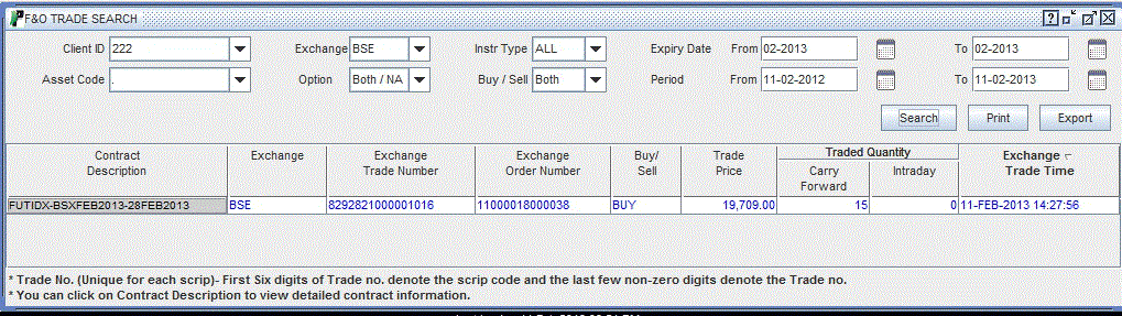 - Period From / To – You can search your F&O trades done between two selected dates. Specify the date from which you wish to view trades(s) in 'From' field. Similarly, specify the date till which you wish to view trade(s) in 'To' field.