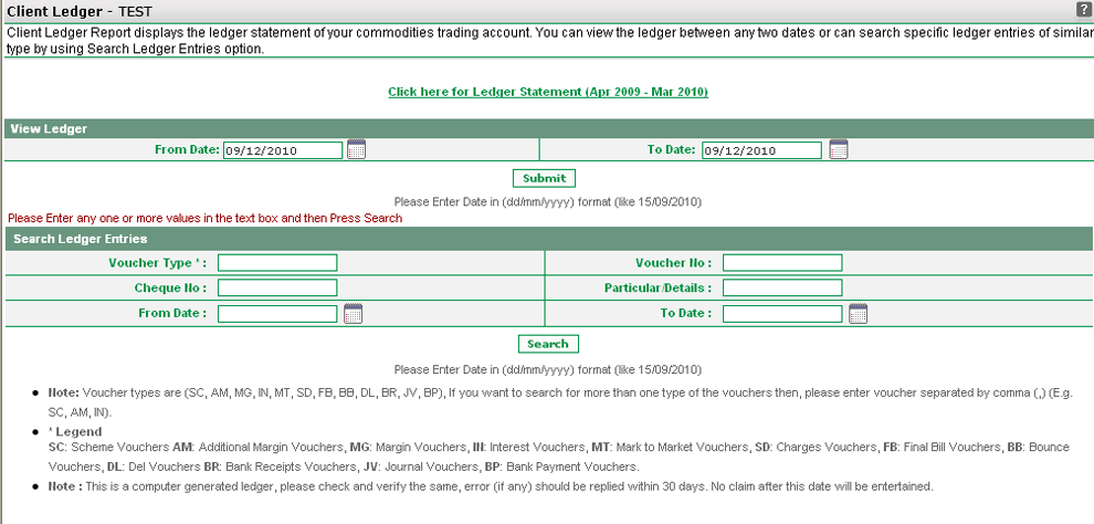 Client Ledger feature lets you view your Ledger statement. To access this feature, click on Client Ledger link given in Documents Menu.