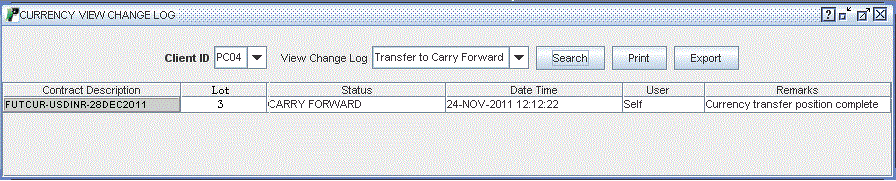 Change Log section displays the instructions placed by you for converting the positions from Intraday to Carry Forward or Carry Forward to Intraday.