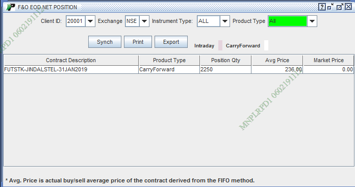 NSE F&O EOD Net Positions Report provides details on your Futures and Options (F&O) contracts in NSE that were expired or squared-off at the end of previous trading day.
