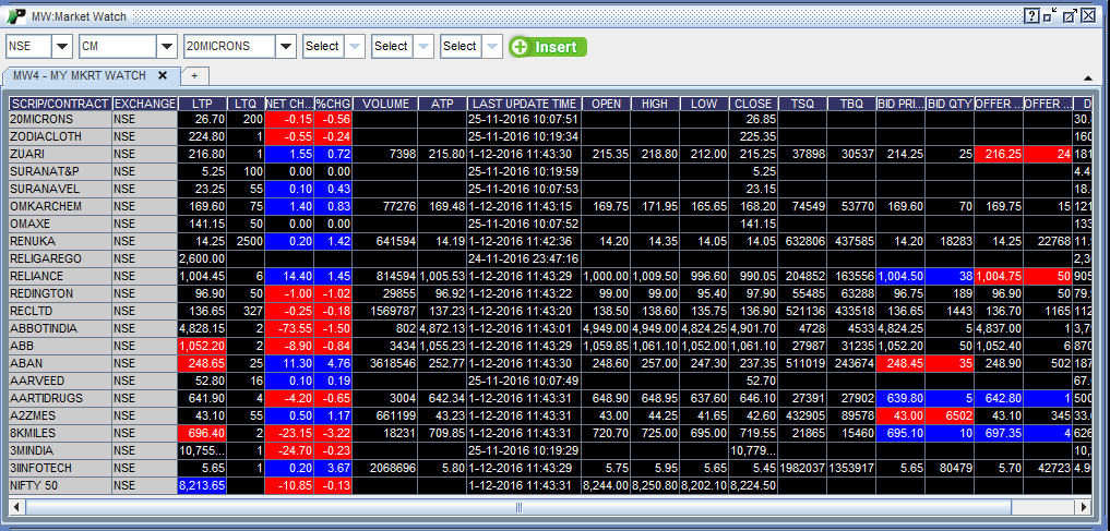 Market Watch Window displays you the live streaming quotes, volume and other related parameters of selected