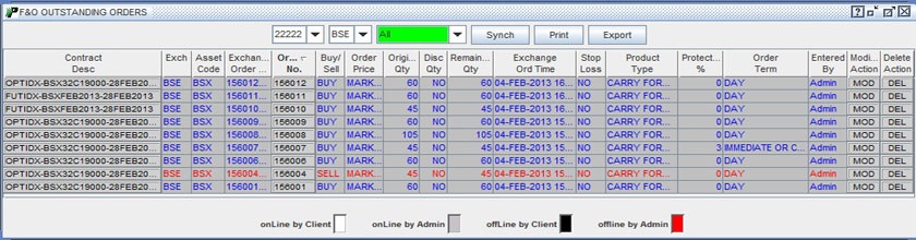 your outstanding F&O orders. This option can be accessed from F&O Trading Menu. Note! You can also press 'Shift+F3' key on your keyboard to access this option.