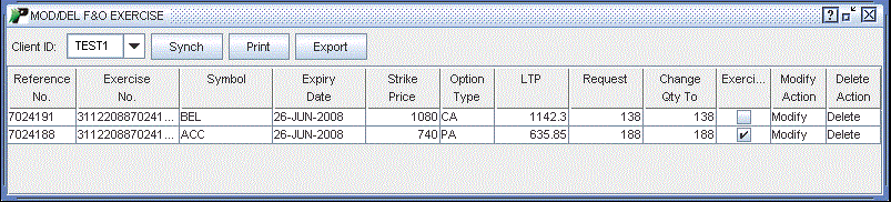 Exercise – This field displays whether you opt to exercise the corresponding contract or not to exercise