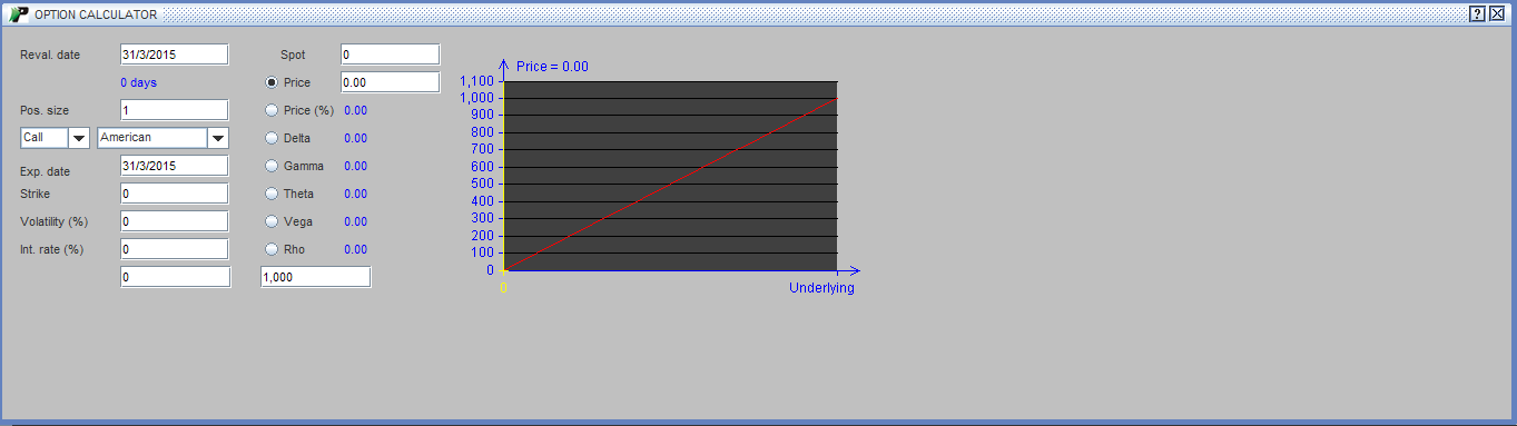 Once you enter all the values mentioned above, press 'Enter' button on your keyboard to view the options premium for the given contract. It will be displayed in Price field.