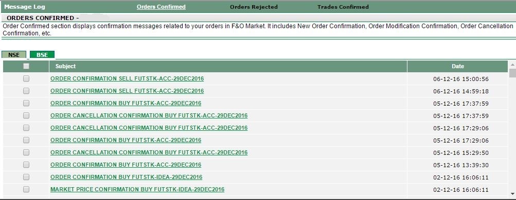 Prev F&O Messages feature displays you the messages, which were previously sent by NSE in response to your order and trade related activities in F&O segment. To view