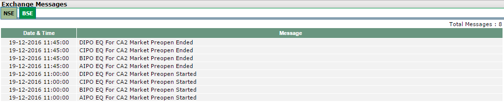 Prev CAP Exchange Messages feature displays you the messages that were sent by NSE & BSE in the past. To view these messages, click on