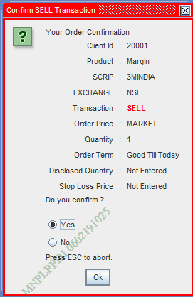 want to place the SELL ORDER. To place order at the prevailing market price,