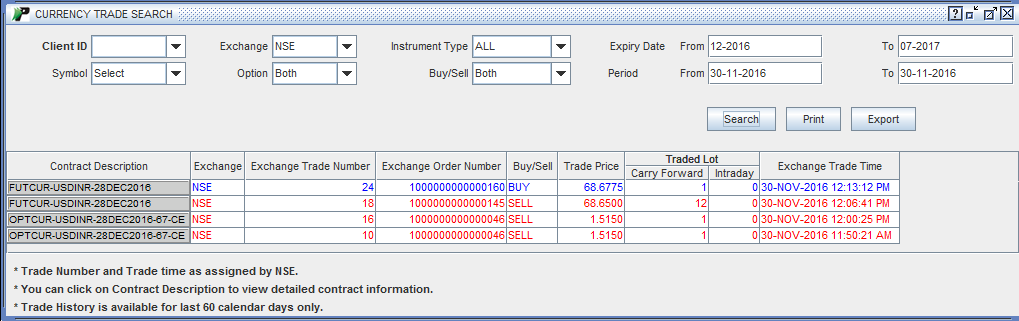 Exchange- You can search trades on the basis of exchange. Select the exchange under which you wish to view your Currency trades.