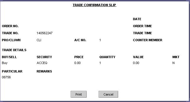 corresponding trade by clicking on 'Trade' button. On clicking this button, you will view the Trade Confirmation