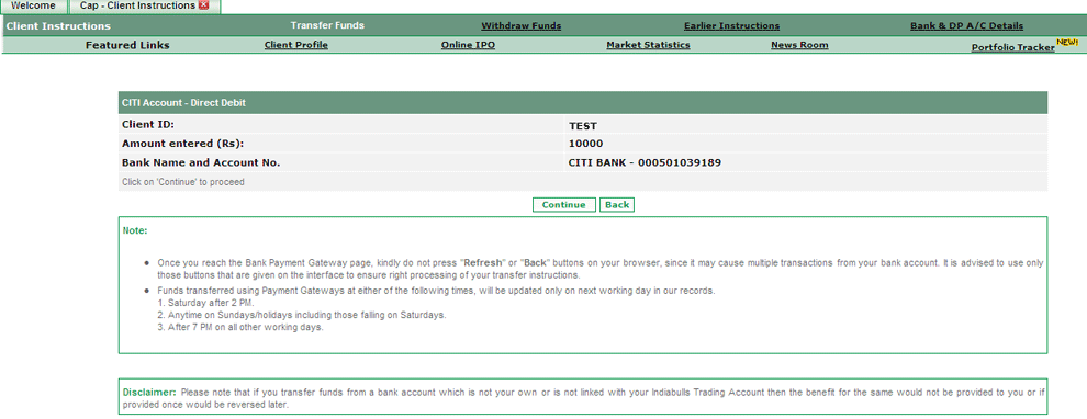 - Now, you can login into your bank account and transfer funds to Indiabulls Account.