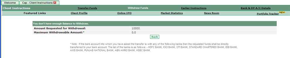 Note! If the bank account into which you have asked to transfer is with any of the following banks, then the requested funds shall be directly transferred to your bank account - HDFC Bank, Citibank, IDBI Bank, Standard Chartered Bank, ABN Amro Bank and Bank of Punjab.